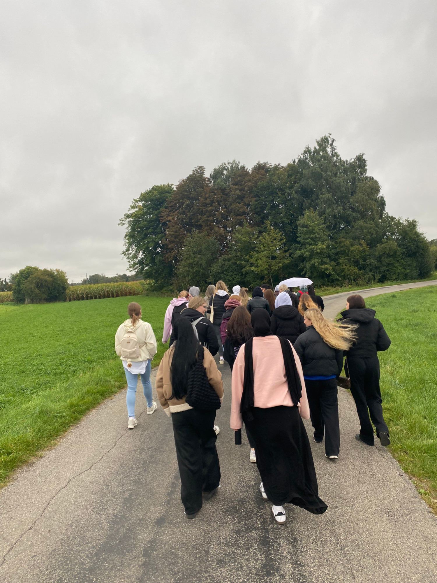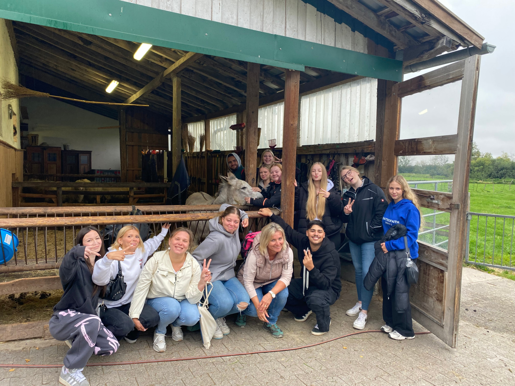 Der Olchinger Bauernhofkindergarten ist der einzige Bauerhofkindergarten des Landkreises. Trotz Nieselregens machte sich die 11B auf den Weg zu Fuß vom Olchinger See zum Kindergarten. Sie wurden freundlich begleitet und durch den Tag geführt von der Leiterin des Kindergartens, Frau Friederike Becker. Die Schülerinnen und Schüler haben sich über das Konzept und die pädagogische Arbeit informiert, bewunderten die in sich ruhenden, fleißigen und freundlichen Kinder und stellten zahlreiche Fragen an die Leiterin. Ein besonderes Highlight war der Stall mit den Schafen und dem Esel, die sich auch streicheln ließen. Am Ende des Tages hieß es: „Das ist ein toller Kindergarten, aber ich würde nie hier arbeiten wollen!“ und „Das ist ein toller Kindergarten, hier möchte ich arbeiten!“